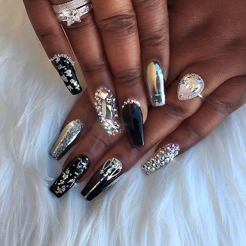 Black Coffin Nails With Rhinestones Nail And Manicure Trends