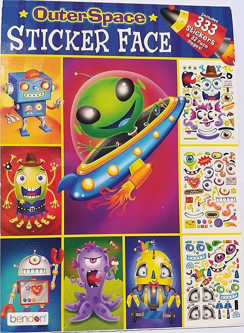 Amazon Com Bendon Outer Space Sticker Face 333 Stickers 32 Face Pages Sticker Book Create Your Own Faces Home Kitchen